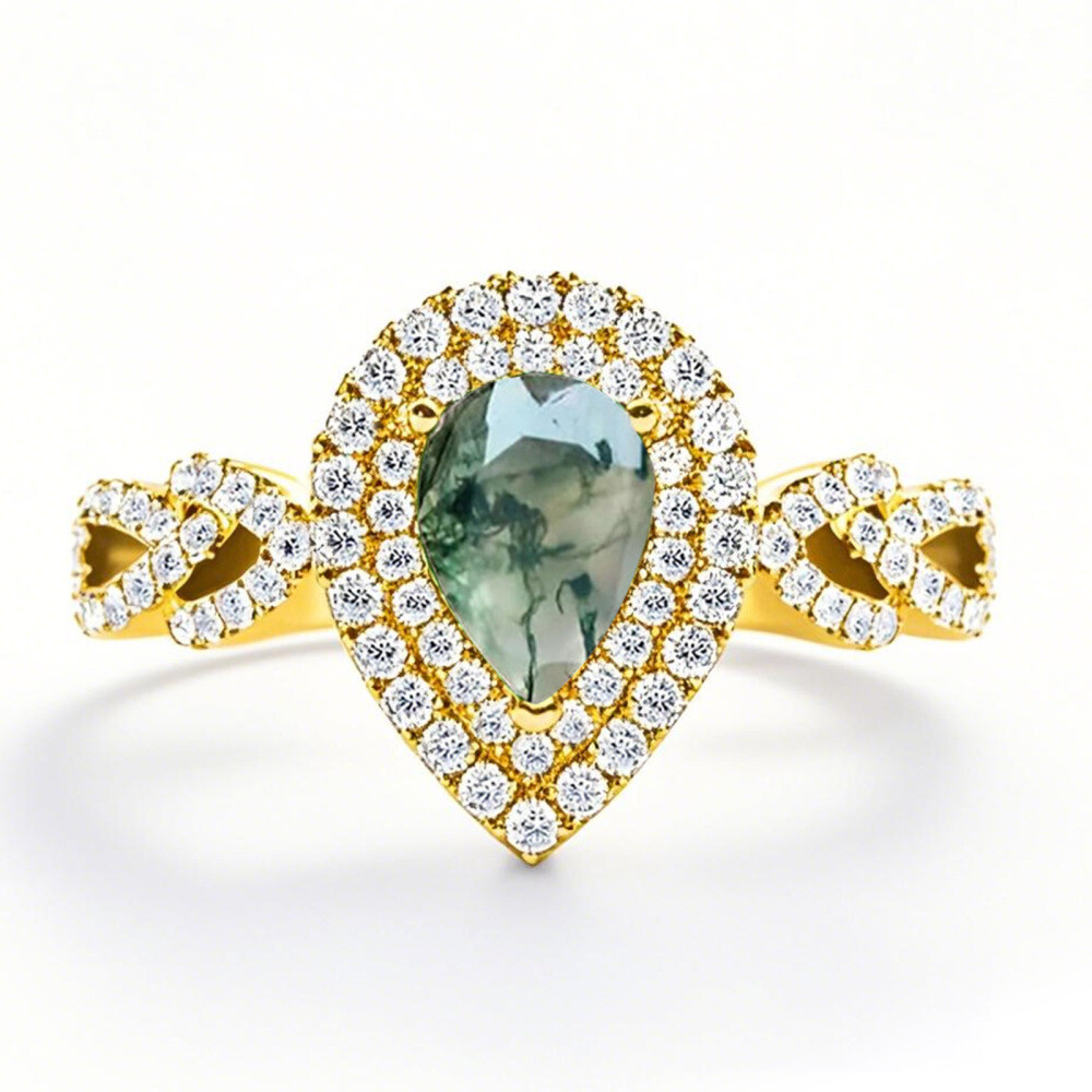 自然の美しさと洗練された職人技の絶妙な融合を愛する女性のために特別にデザインされた、美しい10Kゴールド モスアゲート リングで、エレガンスをご堪能ください。1~6カラットという圧倒的な重量を誇るこの特別なリングは、普段使いにも特別な機会にも最適なアクセサリーです。