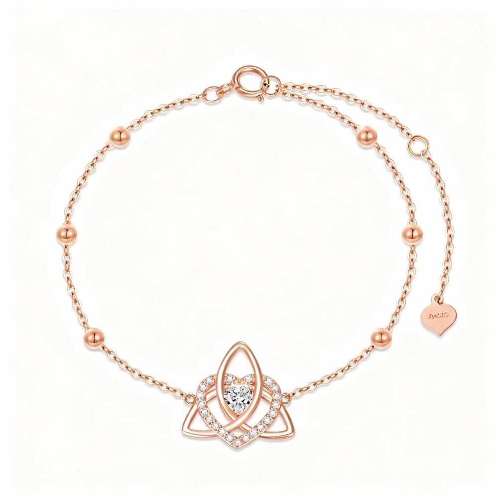 10Kローズゴールドのケルトノットブレスレットで、ラグジュアリーな雰囲気を演出しましょう。輝くキュービックジルコニアが贅沢なタッチを添えます。