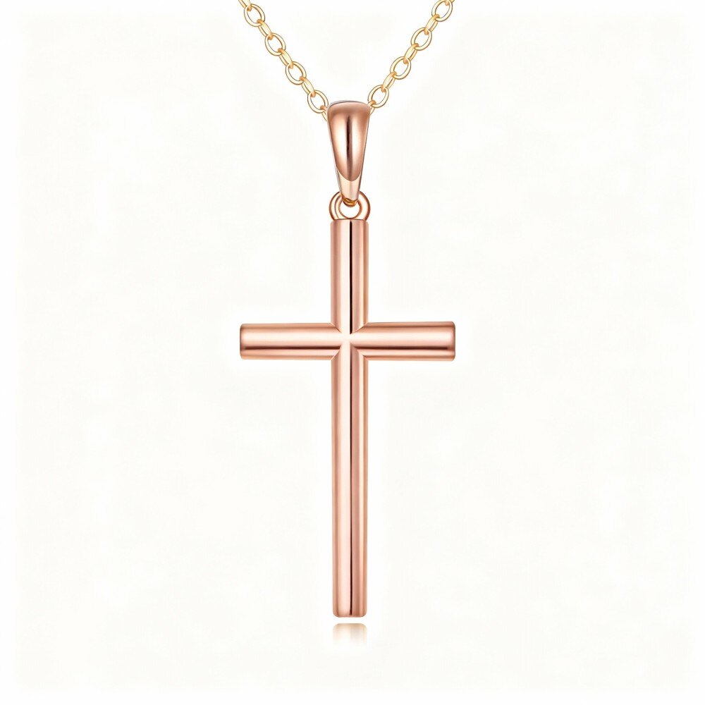 14Kローズゴールドのクロスペンダントネックレスで、エレガンスを高めましょう。シンプルさとスピリチュアルな美しさを大切にする女性のために特別にデザインされた、時代を超越した逸品です。光沢のあるローズゴールドで装飾され、宝石を一切使用していないこのネックレスは、クラシックな魅力とモダンな優雅さをシームレスに融合しています。