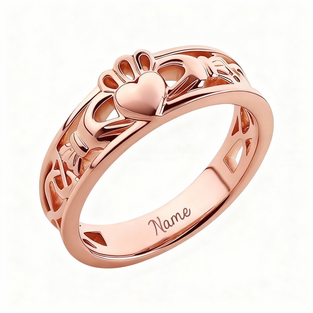時代を超えたエレガンスと個性的なジュエリーを大切にする女性のために作られた、洗練された14Kローズゴールド パーソナライズ クラシック ネームリングをご覧ください。