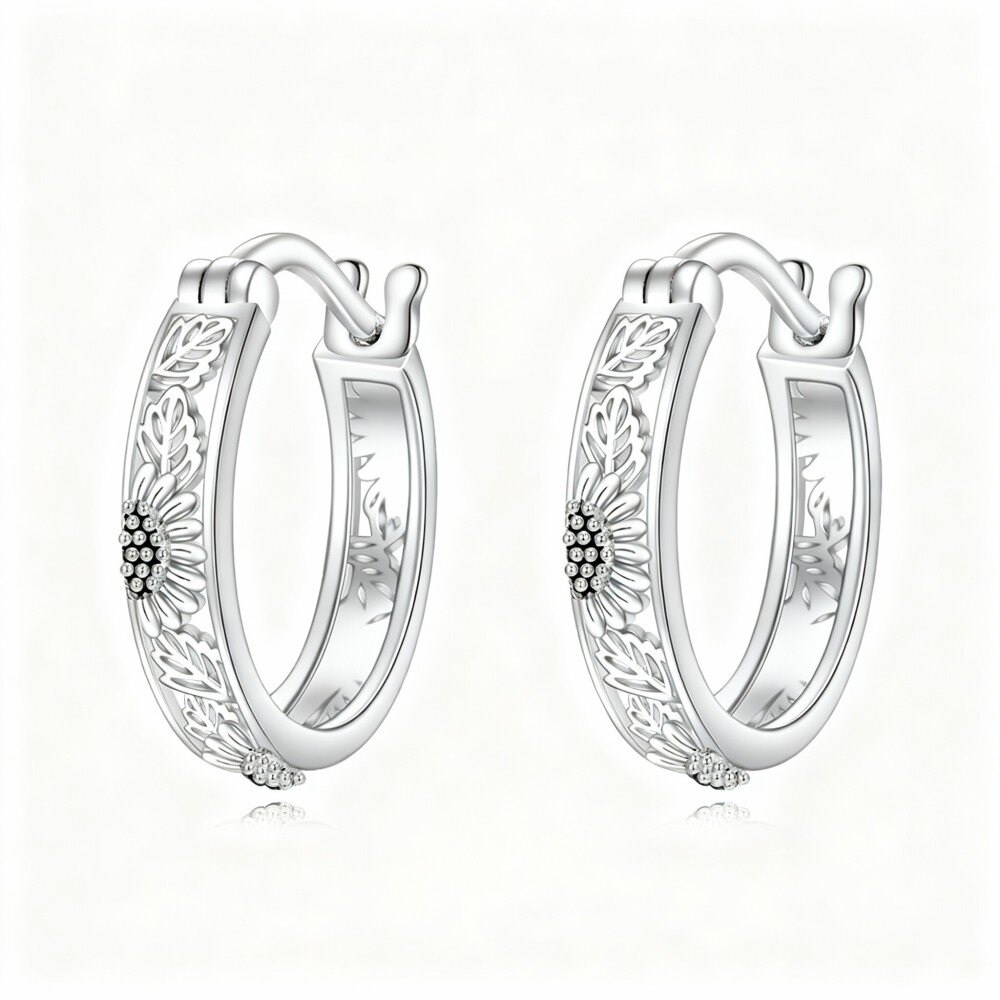 輝く14Kホワイトゴールドで作られたこのサンフラワーフープイヤリングは、クラシックな魅力とモダンなシンプルさを完璧に融合しています。石のないフープデザインが精巧なひまわりのモチーフを際立たせ、軽量で快適な着け心地でありながら、丈夫で耐久性に優れています。個性的でタイムレスなアクセサリーをお探しの女性にぴったりのこのイヤリングは、昼夜を問わずシームレスに変化し、どんな装いにもシックなアクセントを加えます。