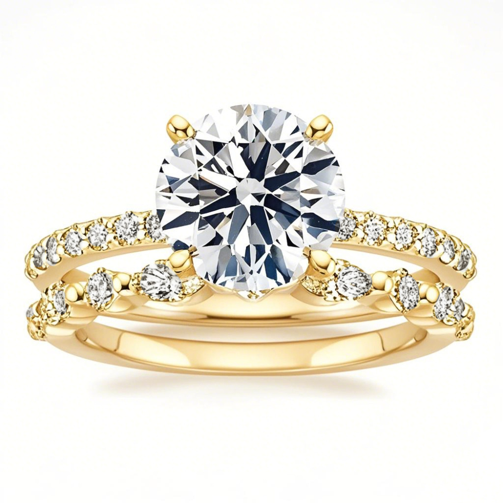 エレガンスの真髄を体現した、女性のためにエレガントにデザインされた、まばゆいばかりのモアッサナイトがきらめく、美しい18Kゴールドのエンゲージリング。この特別なリングは、ラグジュアリーと耐久性を見事に融合させ、お二人の深い愛情と永遠の愛を象徴する完璧な一品です。