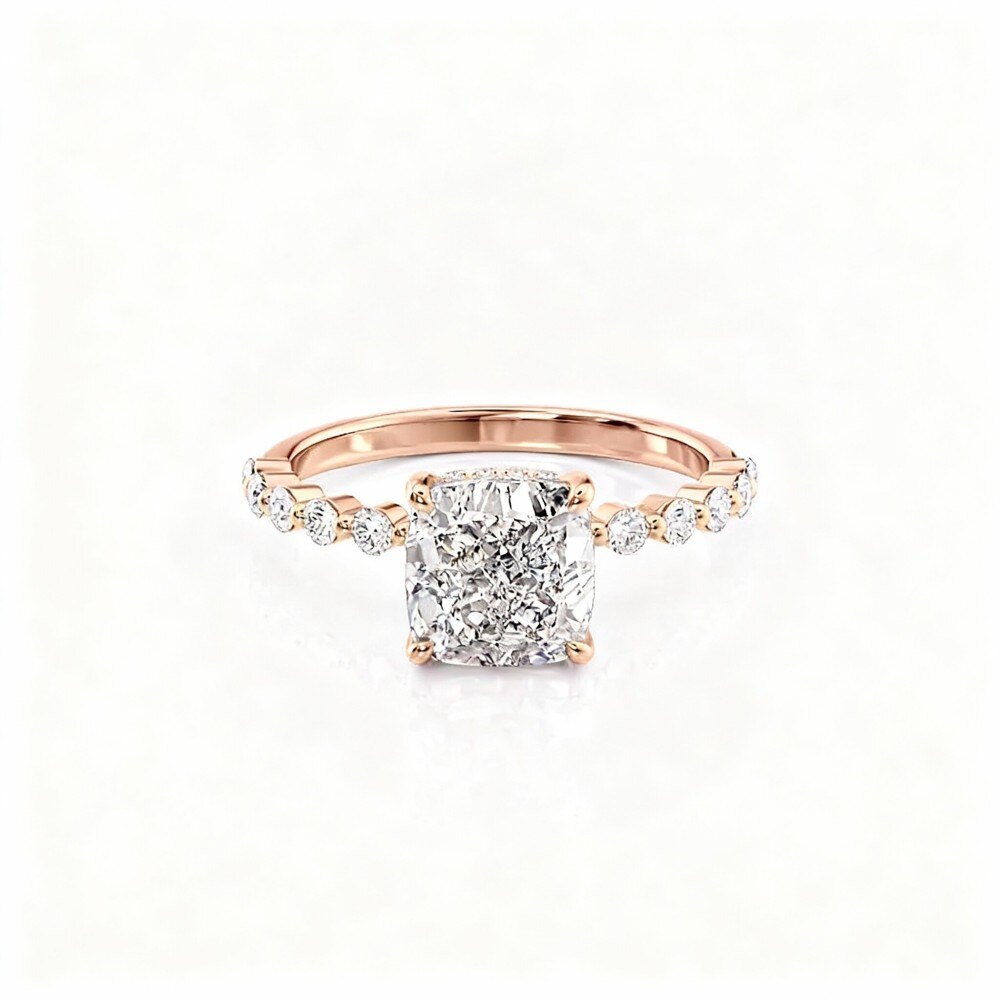 お二人の愛の旅路を輝かせましょう。この絶妙な女性用エンゲージリングは、まばゆいばかりのモアッサナイトの宝石を贅沢な18Kローズゴールドにセットし、永遠の誓いを象徴するように熟練の職人の手で作られています。